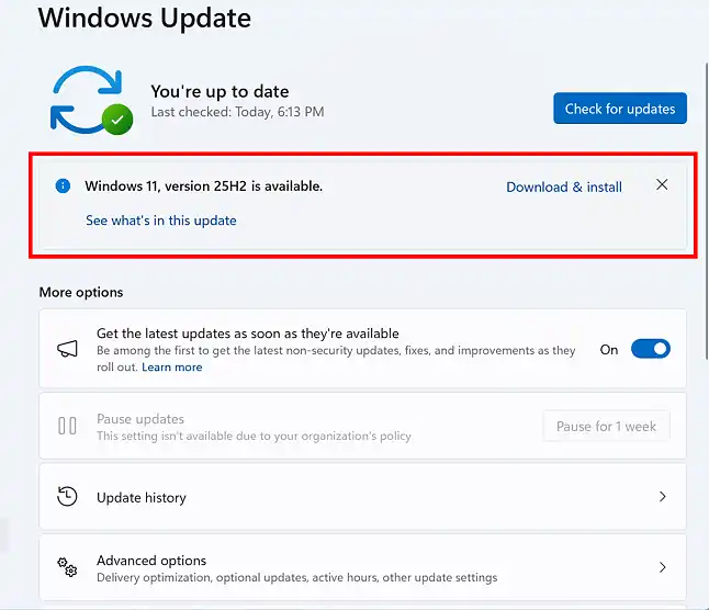 If you’re already running version 24H2, upgrading to 25H2 is surprisingly quick. Microsoft delivers it as a small enablement package, meaning: